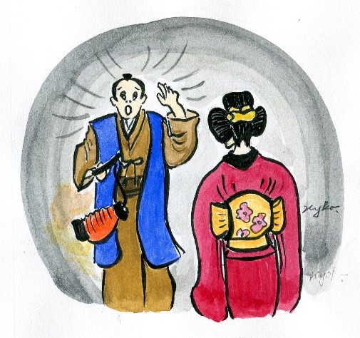 この話で商人は、「のっぺらぼう」に化けた「むじな」に二度騙され驚かされます。このような話を「再度の怪」と云い、怪談の典型スタイルの一つだそうです。最後は落語の落ちのようですが、読者にとっては、妖怪から逃れて人間世界に戻り、ほっと一安心して話は落着するものと思っていたところ、再び妖怪の世界へ引き戻され、そのまま終わります。一瞬、現実と虚構の世界が交錯したままとなり、隣の人の顔を見るのも怖いような恐怖に襲われます。