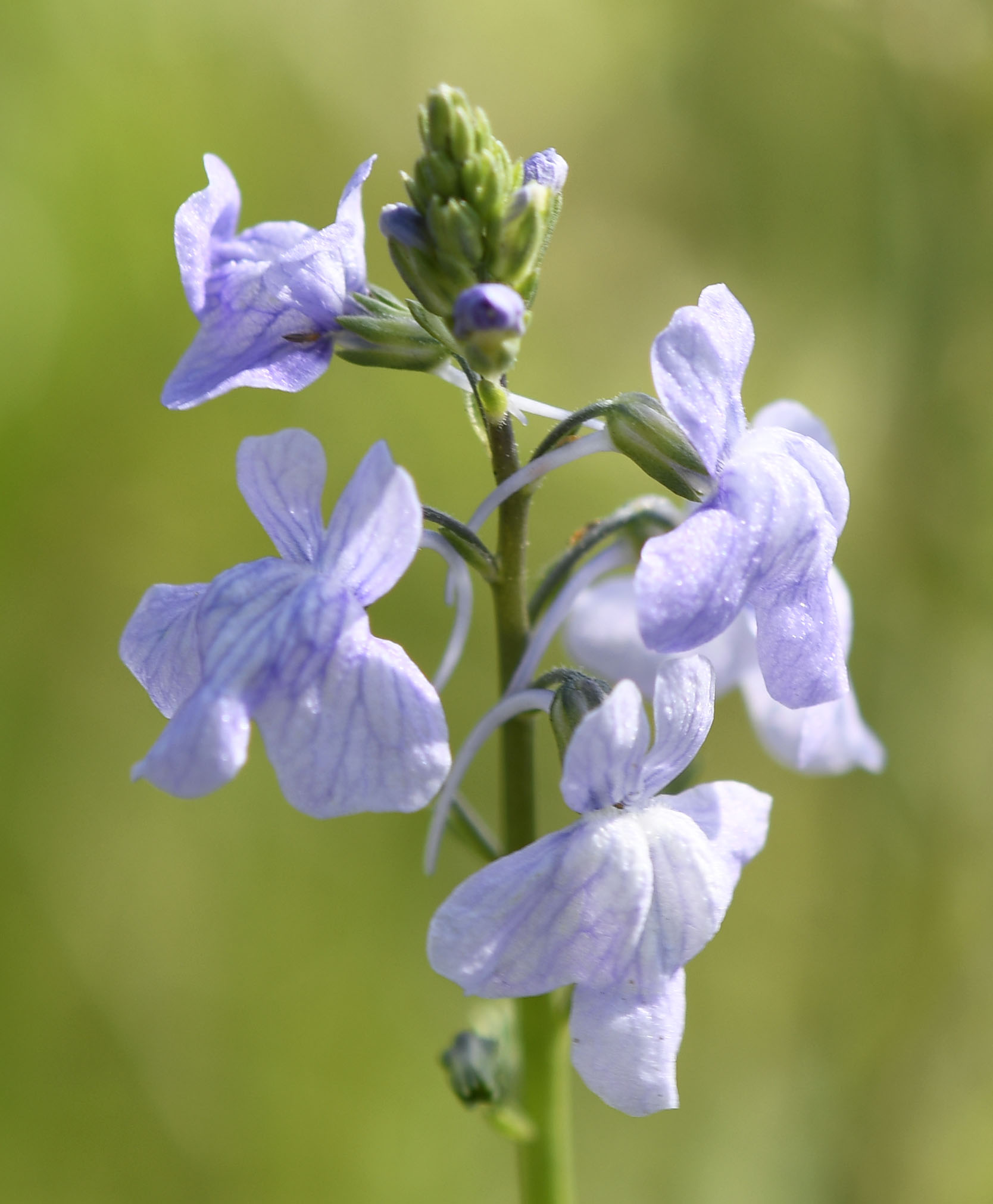 ひょろひょろと伸びた細い茎の先端に、数個の青い花が咲きますが、何とも不思議な形をしています。花弁(はなびら)が輪状に並ぶ普通の花の形にはほど遠く、子供の時遊んだおもちゃの飛行機か、UFOのようにも見えます。「おしべ」や「めしべ」はどこにあるのでしょうか?同じ仲間のオオマツバウンランも非常によく似た形をしています。そこでマツバウンランの花の不思議を、オオマツバウンランと比較しながら調べることにしました。​